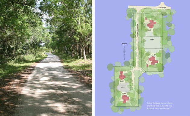Grove Cottages, a sustainable community in Vero Beach, Florida was conceived in 2004 when clear cut landscapes and cookie cutter homes invaded Florida. Our firm’s environmentally sensitive low density infill development is a design oriented alternative to what seemed like insanity.